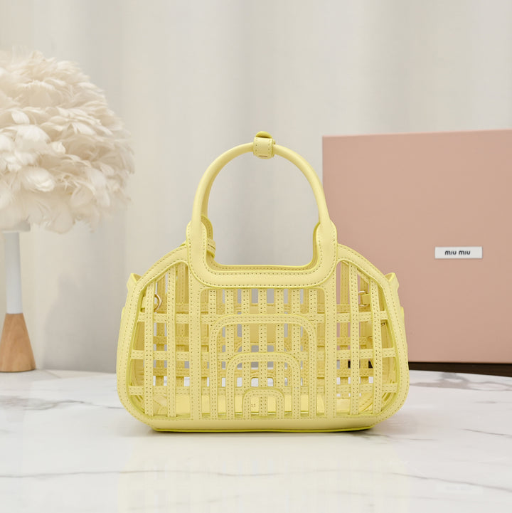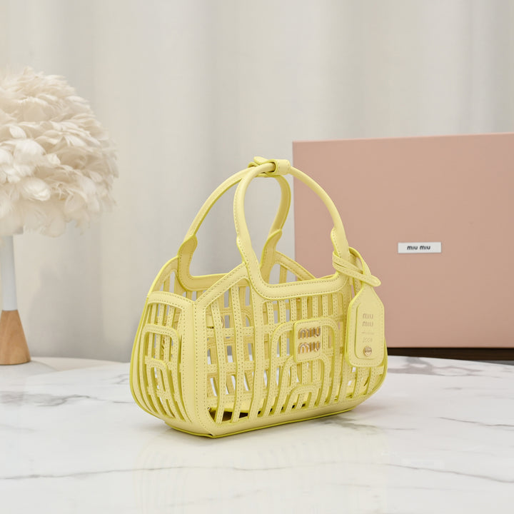 باسكت ميو ميو شنطة جلد اصفر صغيرة نسائية