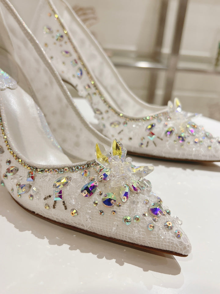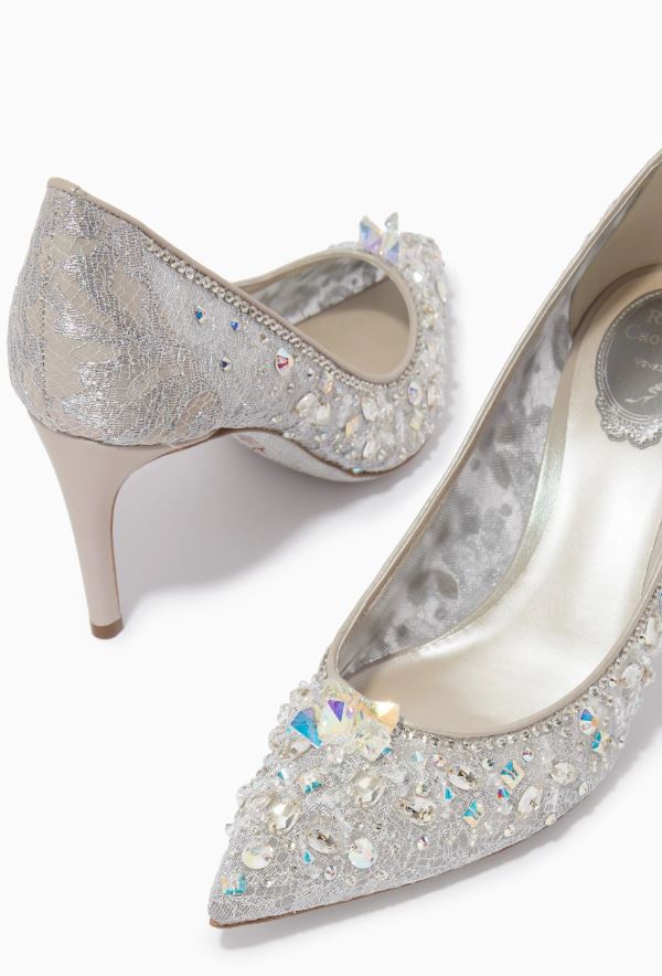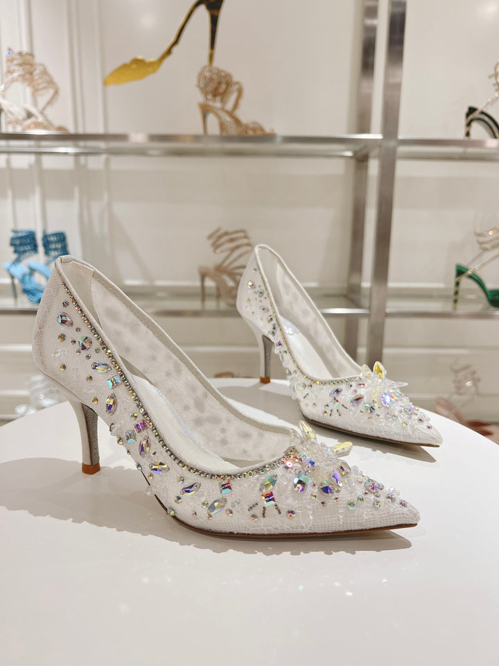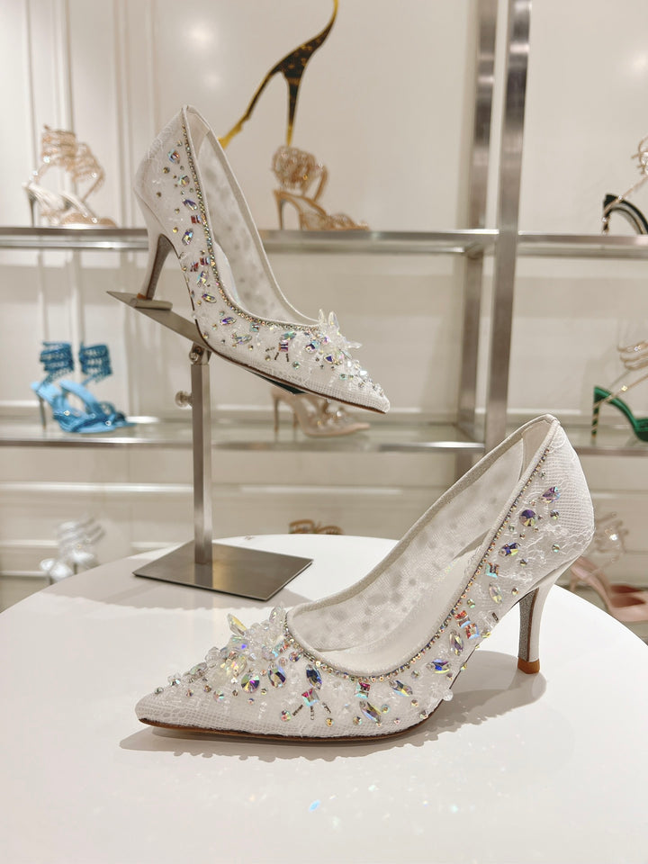 René Caovilla Décolleté Cinderella Pumps in Lace & Leather René Caovilla RC Heel Fashion Shoes Size 35-43
