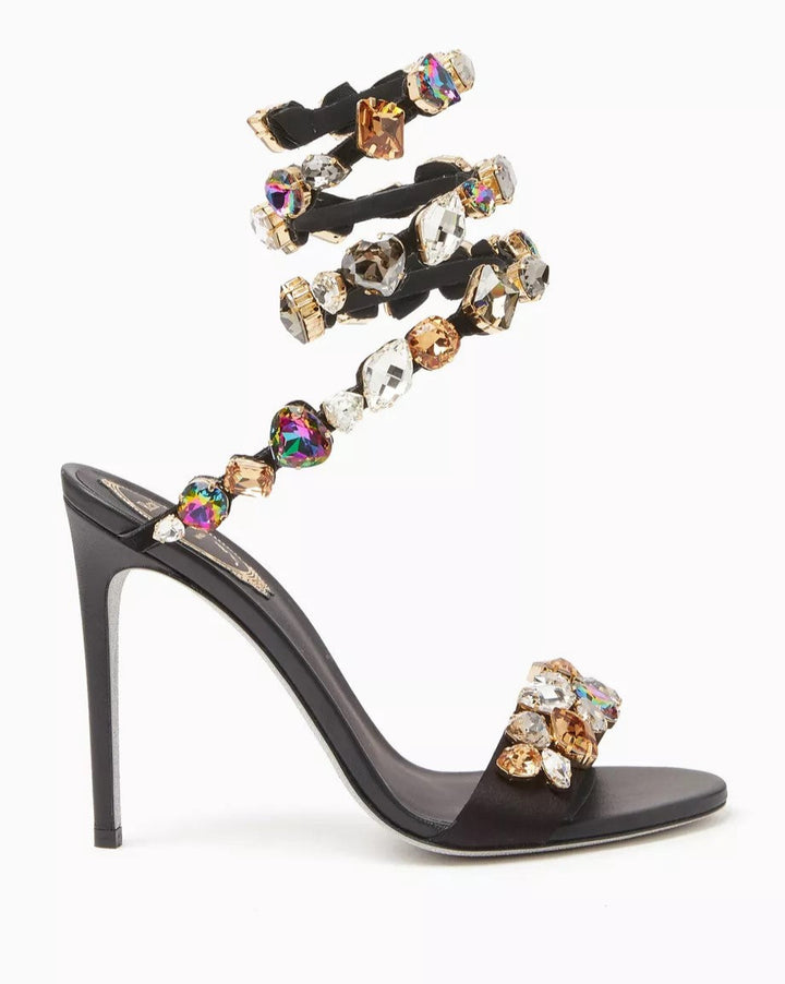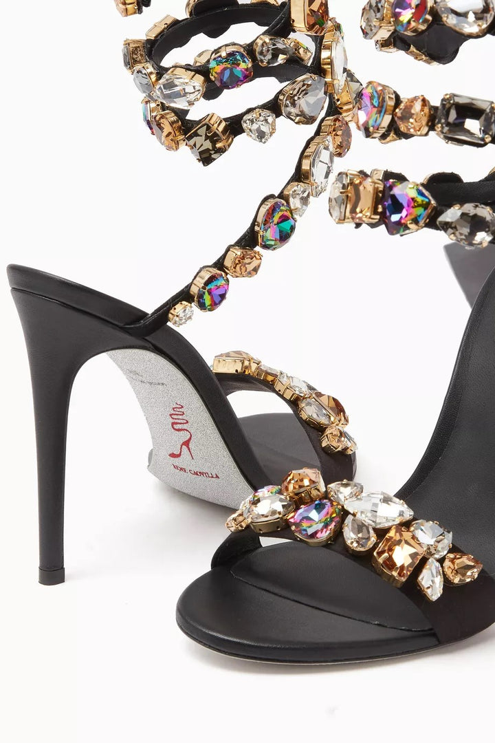 René Caovilla Embellished Wrap-around Heel Sandals in Leathe