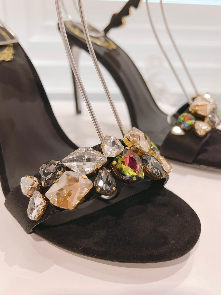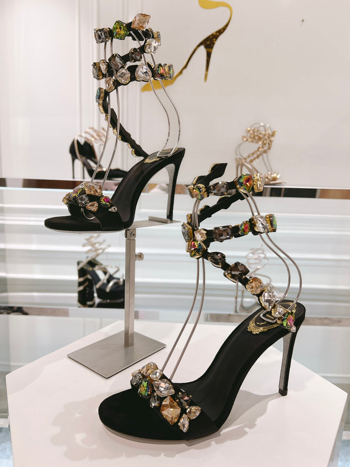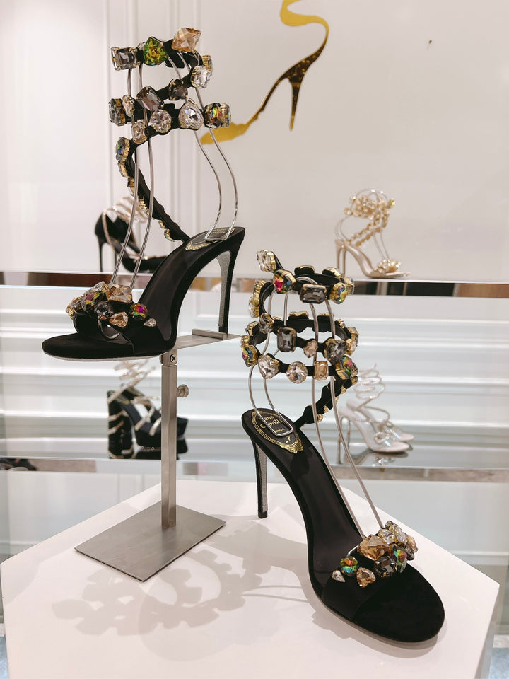 René Caovilla Embellished Wrap-around Heel Sandals in Leathe RC Heel Fashion Shoes Size 35-43