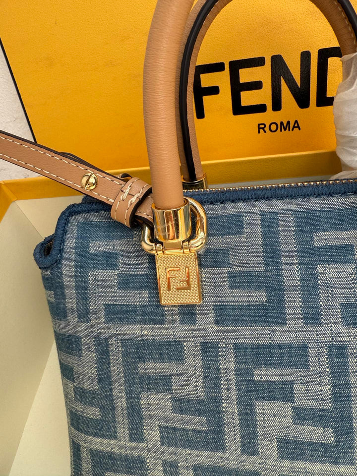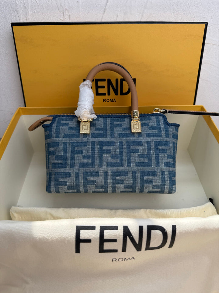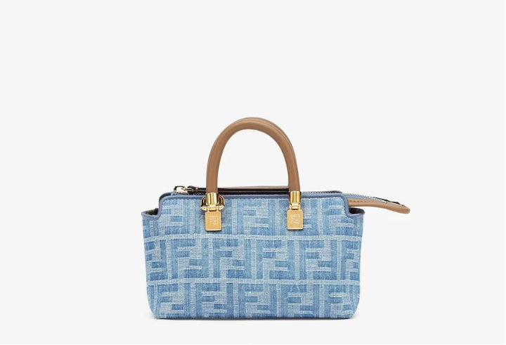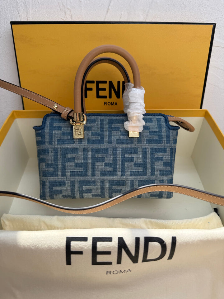 فندي باي ذا واي ميني شنطة قماش بحواف جلد