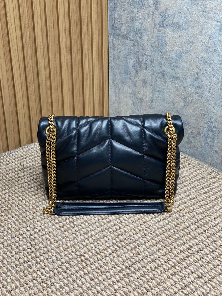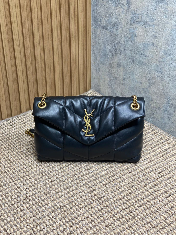 The Saint Laurent Loulou Puffer shoulder bag embodies Parisian sophistication with its soft quilted design and luxurious leather finish. Adorned with the signature YSL metal logo, it’s the perfect companion for day-to-night elegance.